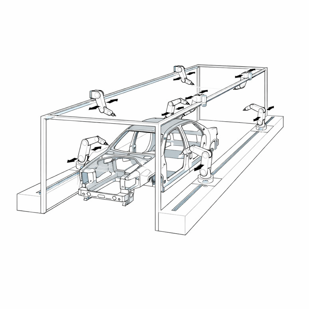 自動車ボデー部品の検査装置では、検査機器を移動させるロボットの走行軸にラックアンドピニオンが使用されていた。しかし、バックラッシの影響により位置決め精度に限界があり、検査精度の向上が課題となっていた。
